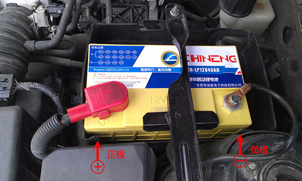 此產品正對面左邊是正極(螺母下有紅色膠片),右邊是負極(如下圖),接線柱前印有”+”、”-”標識,相當于鉛酸電池的正負極,將電池放入車頭箱體內,紅線接到電池正極,黑線接到電池負極,擰緊后即可啟動使用,極為簡單、便捷、安全。