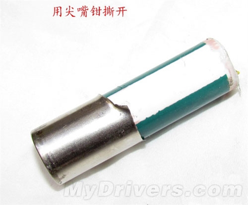 然后,用尖嘴鉗從電芯蓋帽位置暴力撕開,將正極與負(fù)極鋼殼分離,露出安全閥和卷包的正負(fù)極材料。